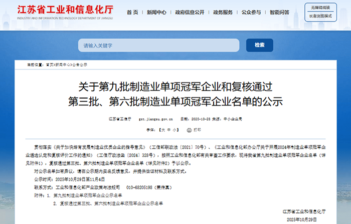近日,江蘇省工業(yè)和信息化廳公布了《第九批制造業(yè)單項(xiàng)冠軍企業(yè)名單》,中電環(huán)保憑借核心產(chǎn)品“核電凝結(jié)水精處理設(shè)備”成功登榜,榮獲“制造業(yè)單項(xiàng)冠軍”這一國(guó)家級(jí)重磅榮譽(yù)。這不僅是對(duì)公司技術(shù)實(shí)力與市場(chǎng)地位的高度認(rèn)可,也是中電環(huán)保在深耕工業(yè)水處理領(lǐng)域三十年征程中的又一重要里程碑。