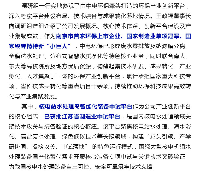 中電環(huán)保股份有限公司是南京市首家環(huán)保上市公司(股票簡(jiǎn)稱:中電環(huán)保,股票代碼:300172),南京環(huán)保產(chǎn)業(yè)協(xié)會(huì)會(huì)長(zhǎng)單位,國(guó)家級(jí)聯(lián)盟理事長(zhǎng)單位,是生態(tài)環(huán)境治理服務(wù)商,主營(yíng)(3+1):水務(wù)、固危廢、煙氣治理及產(chǎn)業(yè)創(chuàng)新平臺(tái),包括:工業(yè)水處理、污水處理及水環(huán)境綜合治理;固危廢土壤、污泥餐廚垃圾處理;煙氣及VOCS治理;智慧環(huán)保;高端裝備等。